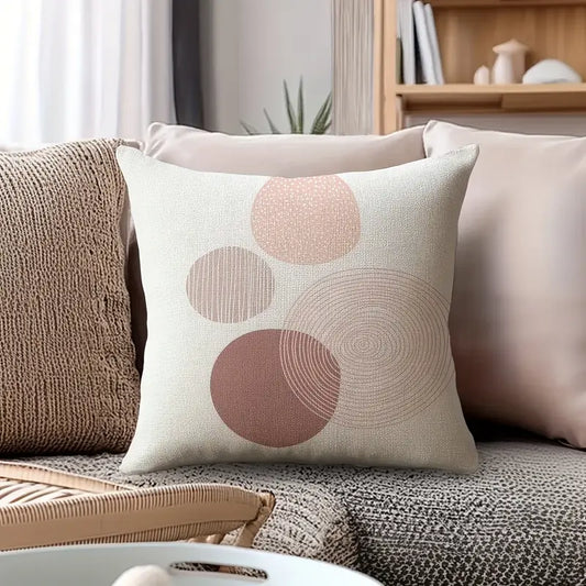 Linen Pillowcase Set (4) Geometric Print Sofa Decor