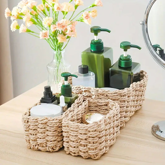 Woven Storage Basket - Desktop Organizer, Cosmetics & Accessories