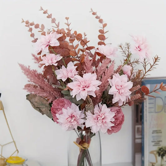 Silk Dahlia Bouquet Eucalyptus - Wedding Home Decor