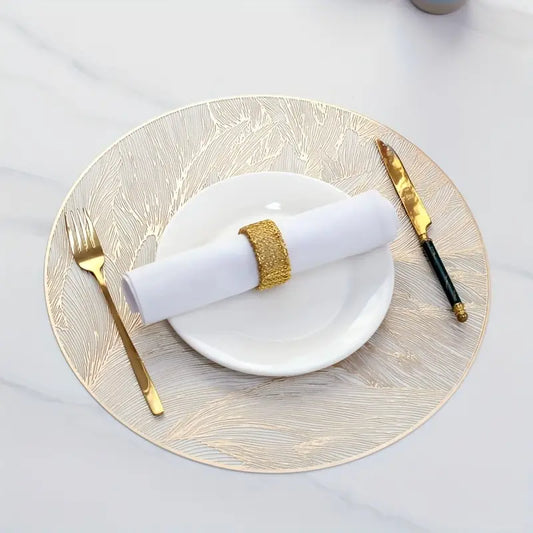 6pcs Elegant Golden Foil Placemats - Round, Waterproof & Heat-Resistant