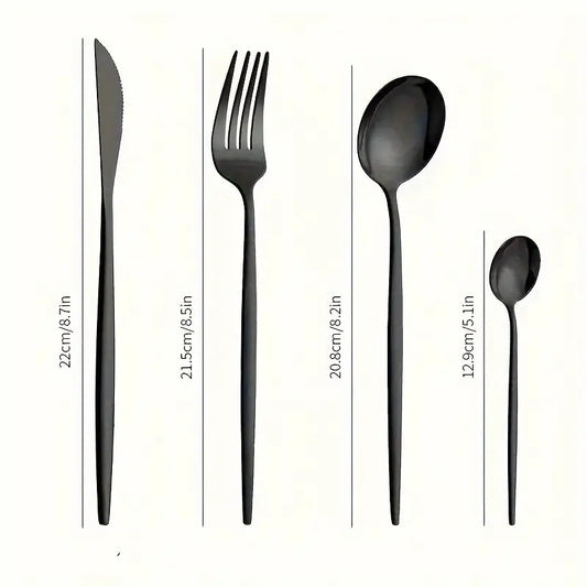 24pcs Portuguese Cutlery Set - Stainless Steel Steak Knives, Forks, Coffee & Tea Spoons