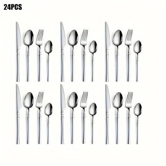 24pcs Silverware Set Gift Box - Luxury Stainless Steel Tableware with Spoon, Fork, Knife
