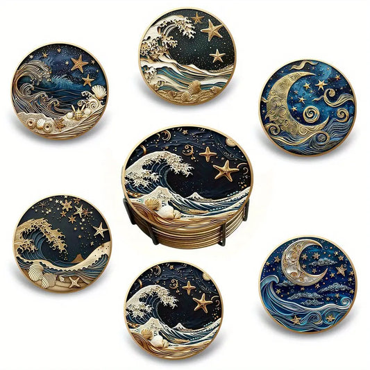 6pcs Wooden Abstract Color Pattern Coaster Set