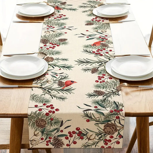 Charming Winter Pine & Berry Table Runner - Festive Red Birds Design