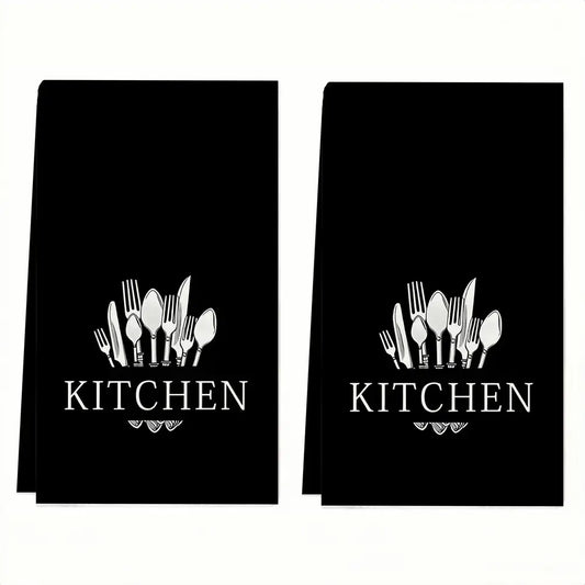 2pcs Soft & Absorbent Microfiber Kitchen Towels - Spoon & Fork Design
