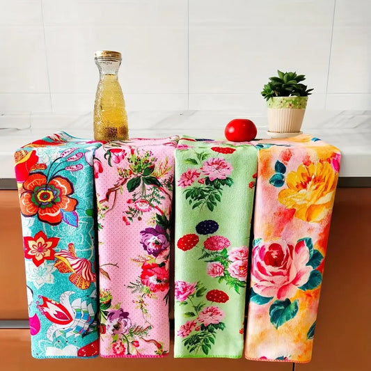 4pcs Microfiber Kitchen Towels, 16x24inch Floral Printed Tea Towels