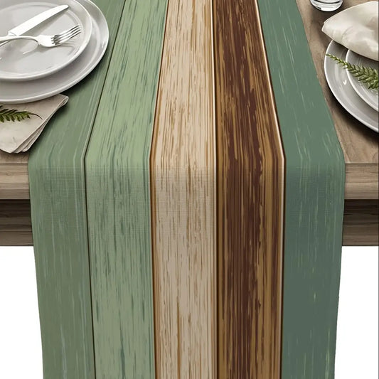 Vintage Wood Grain Table Runner in Grey Green & Brown