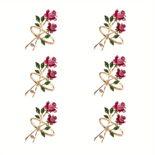 6pcs Golden Metal Rose Napkin Rings, Elegant Floral Design