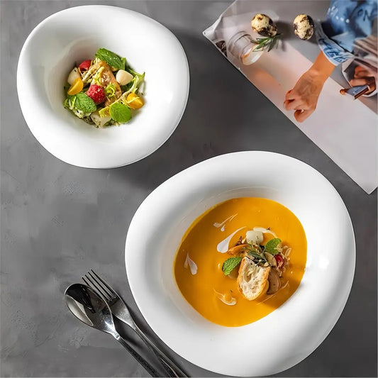 1pc CMYD Studio Ceramic Oval Plate, Creative Irregular Shape