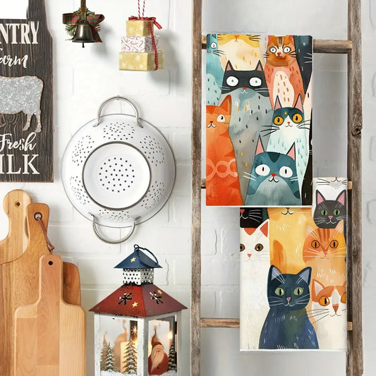 2pcs Whimsical Cat Abstraction Hand Towels - Ultra-Soft, Absorbent & Machine Washable