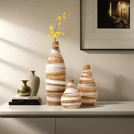 Rustic Ceramic Vase Set - Handcrafted Striped Bud Vases for Home Decor