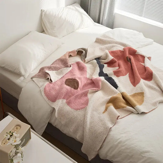 Flower Knitted Throw Blanket - Soft Warm Couch Bed Sofa Cover