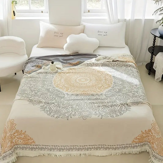 Gauze Blanket with Tassels - Lightweight Throw, Bedspread, Cooling Summer
