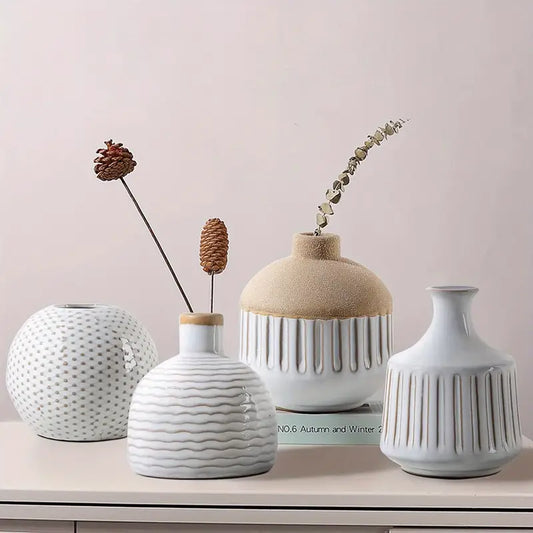 Boho Ceramic Vases Set - Minimalist Geometric Decor