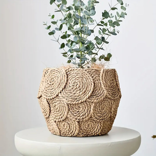 Rustic Cement Planter - Woven Design, Drainage, Indoor/Outdoor