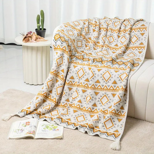 Geometric Knit Throw Blanket - Soft Acrylic Vintage Style