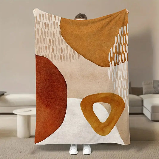 Terracotta Geometric Flannel Throw Blanket - Cozy Sofa Bed Camping