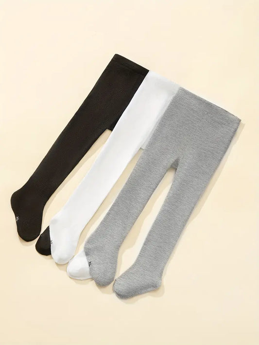 3-Pack Girl’s Solid Color Tights - Stretchy Polyester Leggings for Spring/Summer Fashion