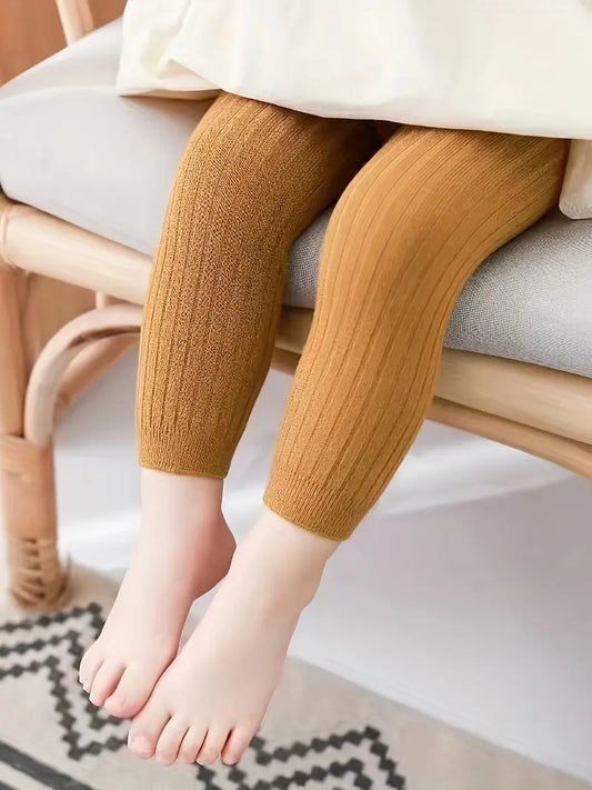 Baby Girl’s Solid Color Leggings - Casual Knit Tights for Everyday Wear
