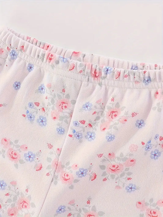 Infant Toddler’s Colorful Flower Embroidered Leggings - Soft Ribbed Cotton Pants for Baby Girls