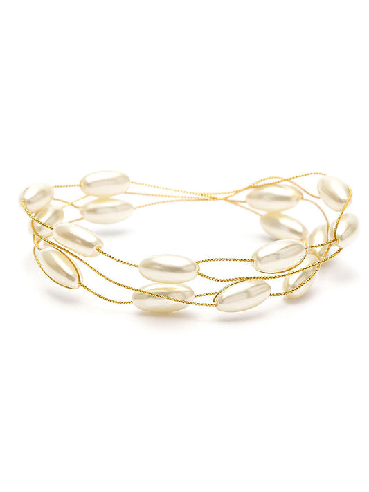 Gold-Plated Beaded Multistrand Bracelet – Fashion Jewelry – Alloy & Pearl – 18cm Length