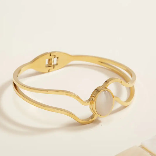 Cat Eye Stone Bracelet - Gold Plated Stainless Steel
