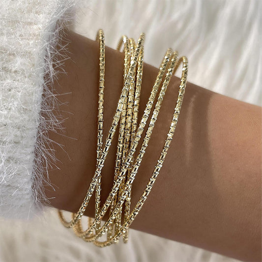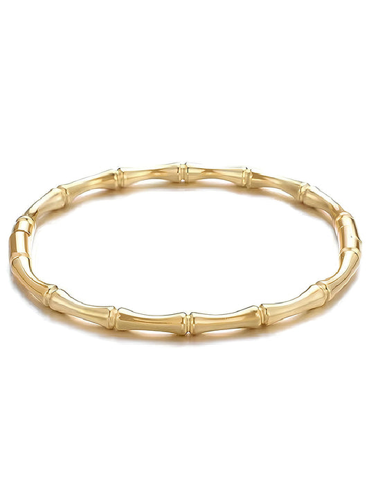 Gold-Plated Bamboo Design Bangle – Fashion Bracelet – Gold-Plated Alloy – Slip-On Style