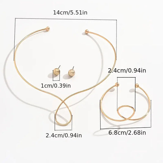 Geometric Jewelry Set: Layered Earrings Bracelet Choker