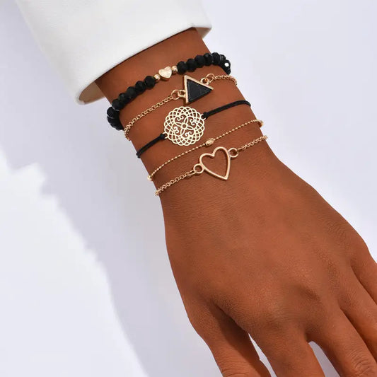 Heart Charm Bracelet Set - Bohemian Vintage Coin Bracelets Women