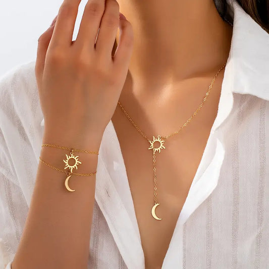 Sun & Moon Jewelry Set: Bracelet Necklace - Celestial Charm