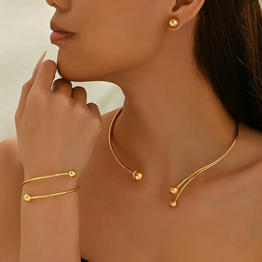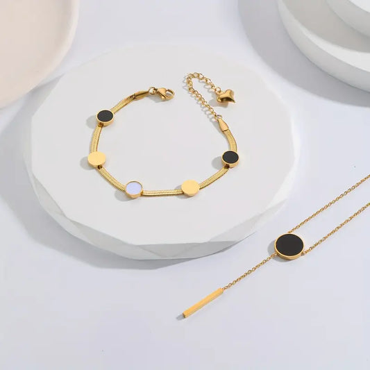 18K Gold Plated Stainless Steel Jewelry Set: Necklace Bracelet