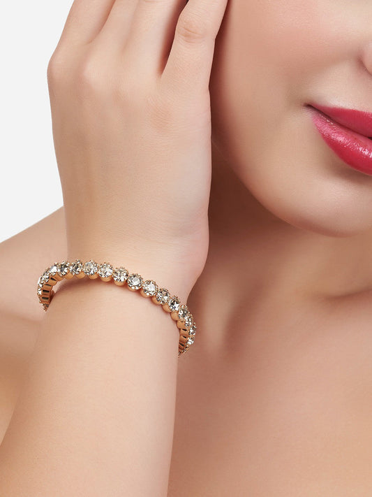 Gold-Plated Artificial Stones Studded Bangle Bracelet – Alloy Base – Individual Piece