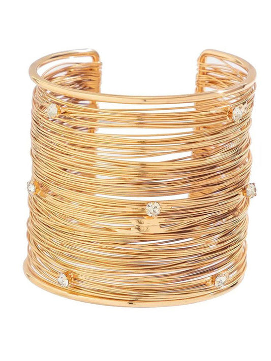 Gold-Plated Crystals Studded Cuff Bracelet – Fashion Accessory – Gold-Toned Metal – 6 CM Diameter