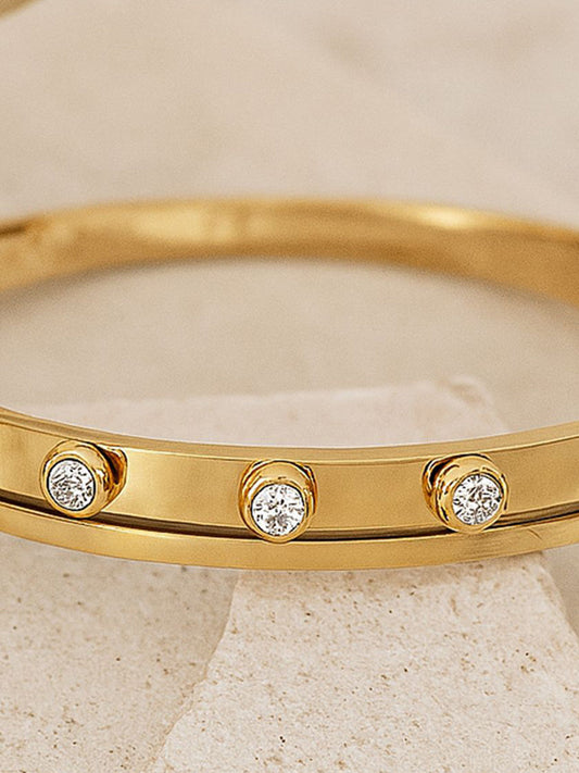 Gold-Plated Studded Bangle Bracelet – Fashion Accessory – Alloy & Artificial Stones – 6.3x5.8cm