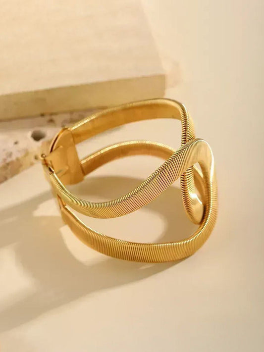 Geometric Double Twisted Kada Bangle – Open Cuff Bracelet – Gold Plated Finish – Adjustable Fit