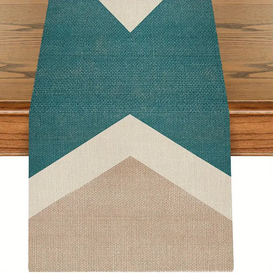 Teal Geometric Table Runner - Modern, Durable, Easy Clean Dining Decor