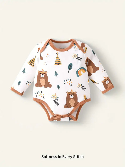 Cute Cartoon Bear Knitted Set for Baby Boys - 4-Piece Cotton Blend Onesie, Pants, Hat & Socks