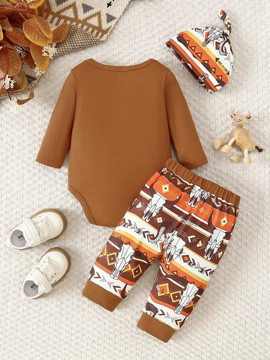 Boys Cotton Blend Outfit Set - Casual Long Sleeve Bodysuit with Alphabet Print & Matching Pants