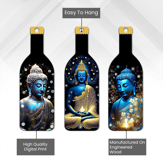 Meditating Buddha Wall Decor – Engineered Wood – 10.6 Inch H (Set of 3)