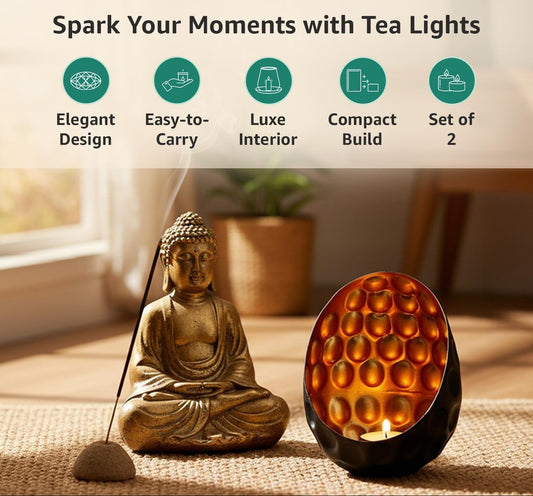 Tea Light Holder Stand – Handcrafted Golden Aluminium – 7.11cm H