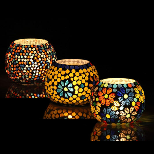 Tealight Candle Holders – Glass Mosaic Design – Set of 3