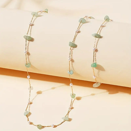 Bohemian Style Beaded Necklace with Drop Bead Collar Chain