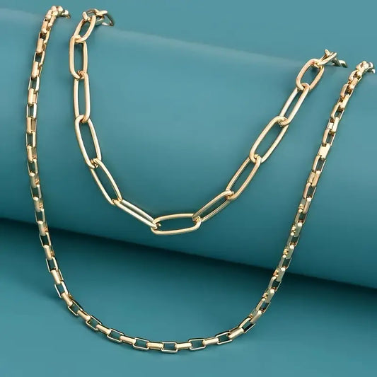 Geometric Layered Necklace – Gold Metal Punk Hip-Hop Style Trendy Jewelry for Women & Girls