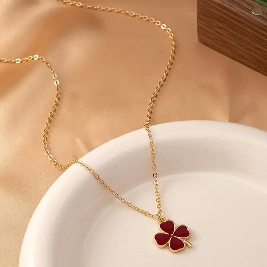 Four-leaf Clover & Round Shape Chain Necklace for Wome