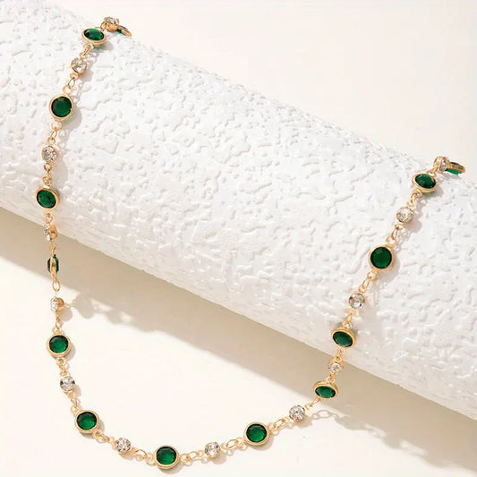 Retro Green Zircon Necklace – Short Clavicle Chain for Women Party & Banquet Jewelry
