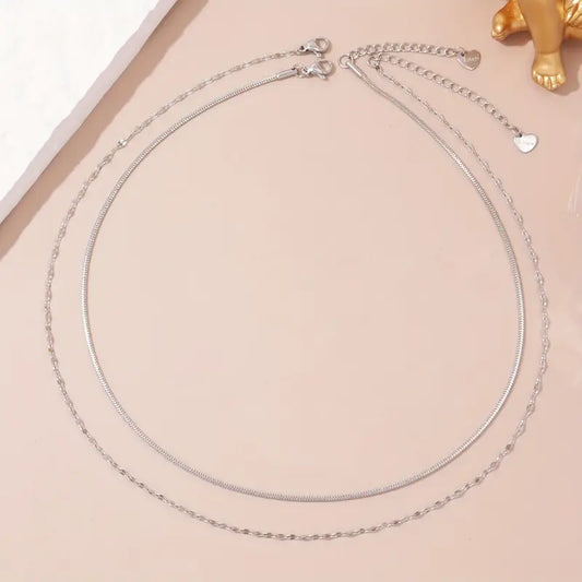 Minimalist Stainless Steel Double-Layer Necklace – Gold & Silver Daily Fashion Jewelry
