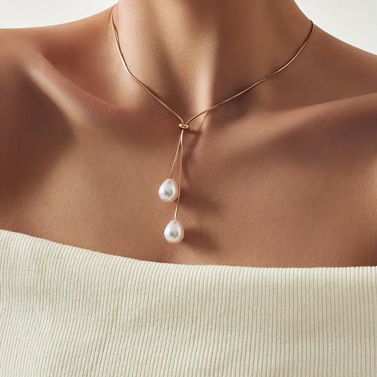 Elegant Faux Pearl Y-Necklace with Hollow Chain Design