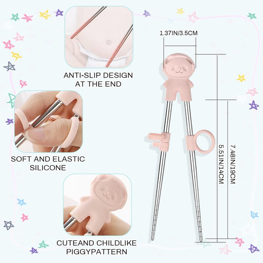 Training Chopsticks – Kids Dining Utensils – Food Grade Stainless Steel Hinged – 2 Pairs