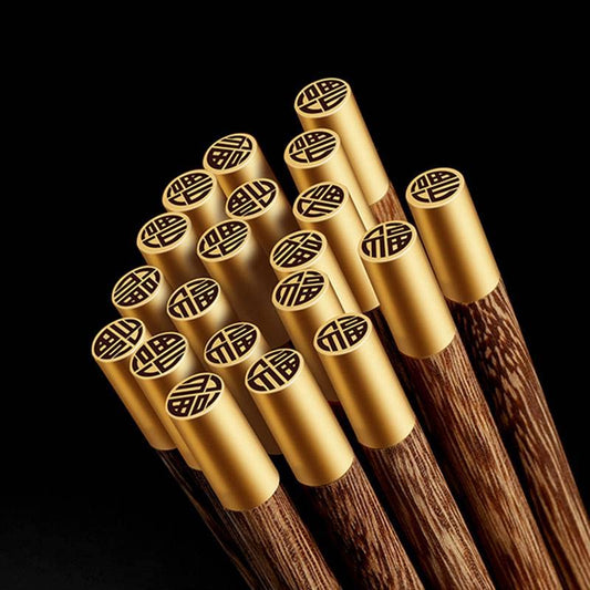 Ebony Wenge Wood Chopsticks – Dining Chopsticks – Natural Wood, Engraved Alloy Tip – 25cm (2 Pair)