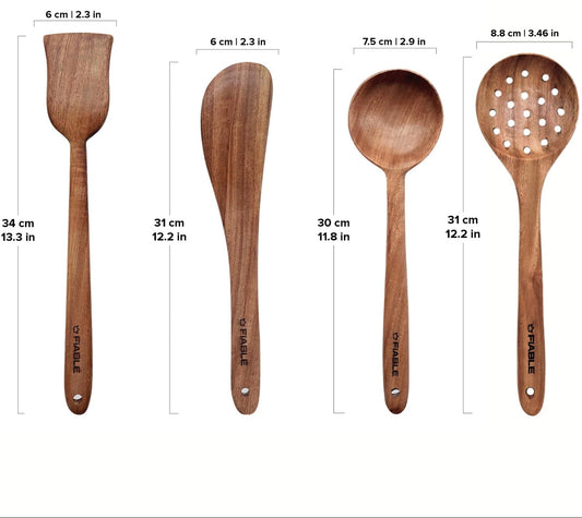 Wooden Flip Spatula Ladle Set – Kitchen Utensils – Neem Wood, Scratch-Free – Set of 4, 37cm